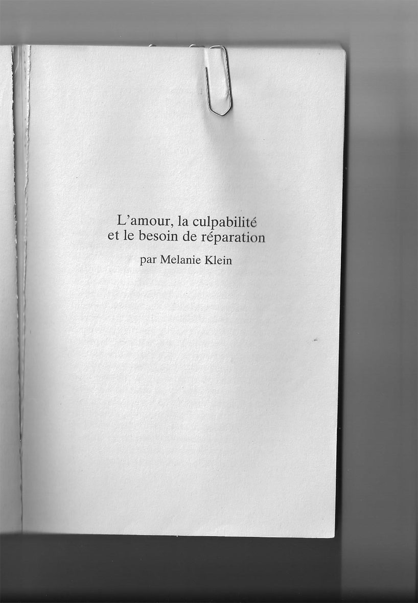 Fiche de lecture " L’AMOUR, LA CULPABILITE ET LE BESOIN DE REPARATION – " - Mélanie Klein - Edt PBP